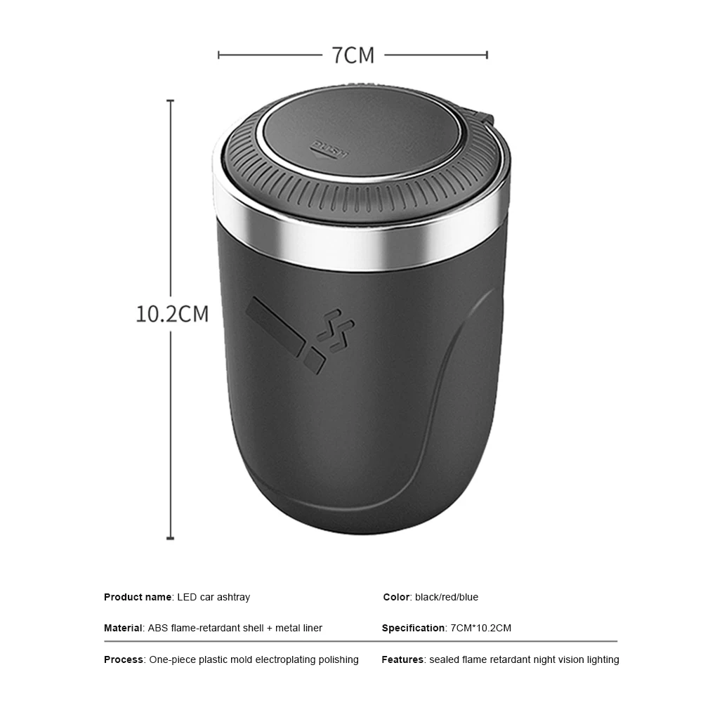 Multifunctional Car Ashtray with Blue LED Light Push Type Lid Vehicle Cigarette Holder Ashtray Trash Can Interior Decoration