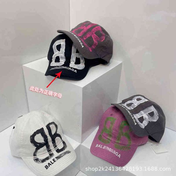 designer hat balenclaga original high version of paris b family letter embroidered baseball hat female hand-painted graffiti duck tongue mal, Blue;gray