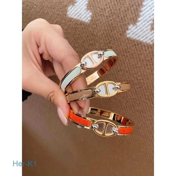 designer hermss bracelets bangle shunfeng new h pig nose light luxury gold plated high fashion enamel with logo iwp3, Black