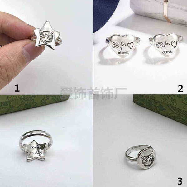 designer jewelry bracelet necklace ring accessories fearless series kitten round five pointed star trend male female lovers pair ring, Silver