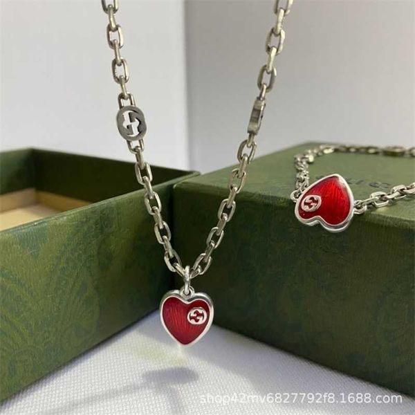 designer jewelry bracelet necklace ring enamel bracelet used glue dropping red love peach heart clavicle chain for men women, Silver