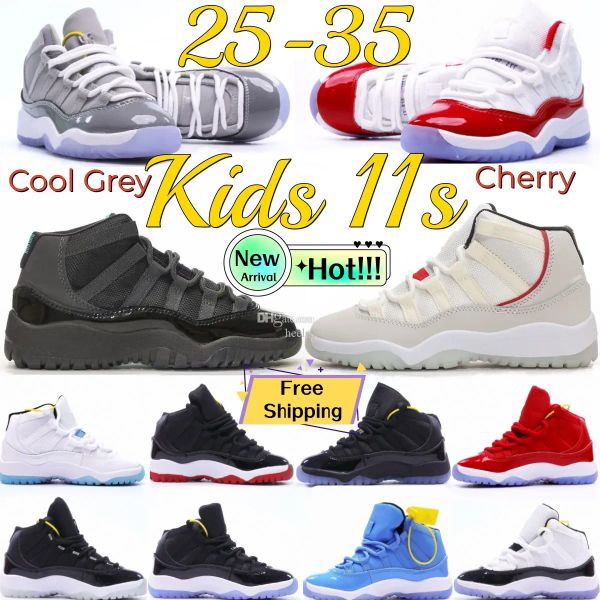 designer kids sneakers cherry 11 boys 11s basketball shoes children youth toddlers cool grey trainers girls playoffs bred win like 96 legend, Black