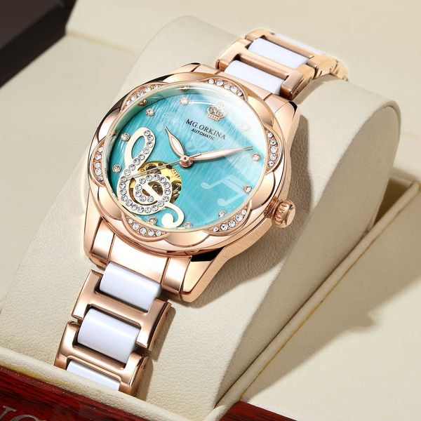 designer mechanical watche luxury brand ceramic stainless steel diamond music ladies automatic wristwatches 210616, Slivery;brown
