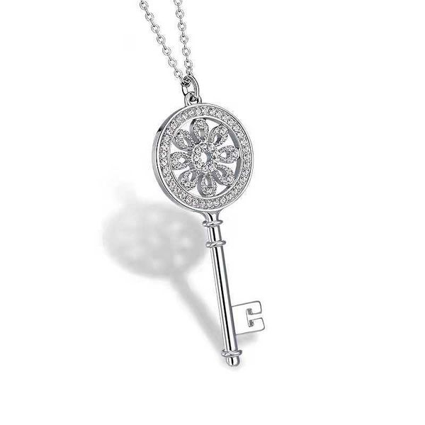 designer new the new tiffay key necklace is made of titanium steel with zircon inlaid. it small fresh fashionable and light, Silver