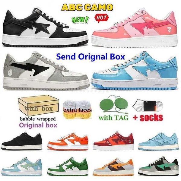 designer shoes with box casual shoes bapestas running shoes sneakers trainers fashion designer pink patent leather black white color combo g