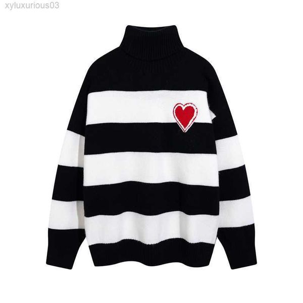 designer sweater man woman black and white stripe rainbow color womens knitting love a high collar turtleneck fashion letter long sleeve clo