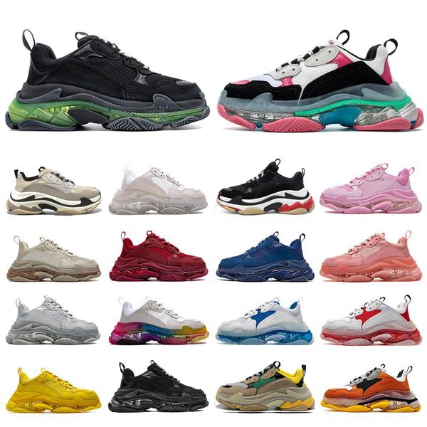 designer triple s clear sole casual running shoes men women sneakers red turquoise neon green paris triple-s black white pink mint crystal b