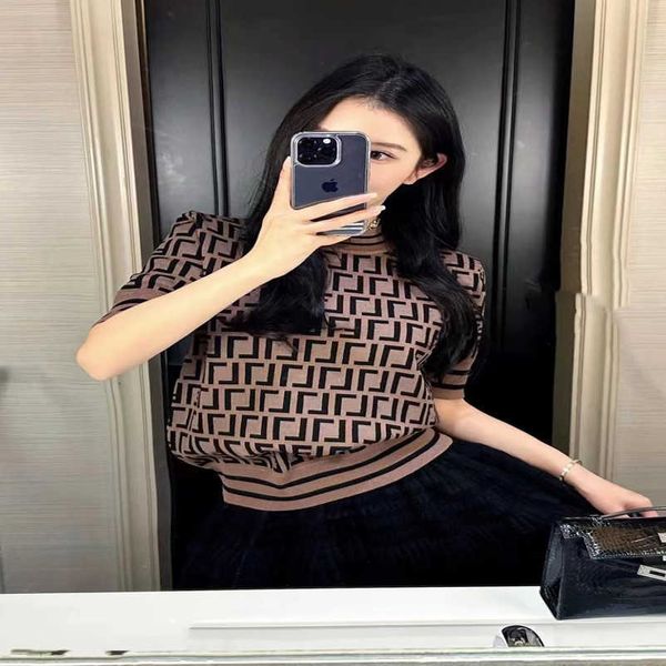 designer womens t shirt spring/summer sleeve t-shirt half height round neck classic style letter jacquard, White;black