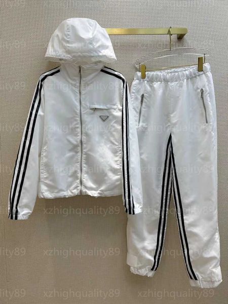 designer womens two piece tracksuit women sweatpants joggings black striped side trim hooded windbreaker jacket casual pants women set desig, Gray