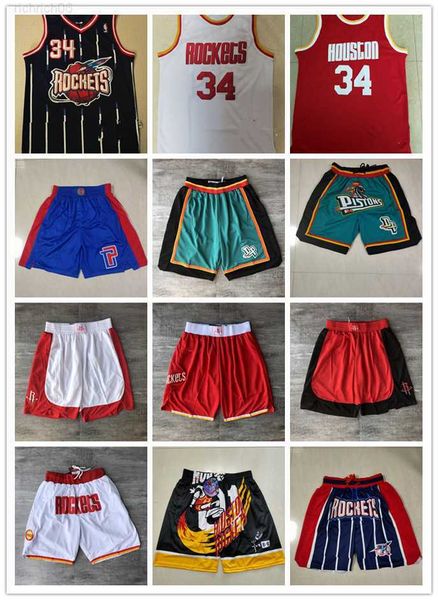 detroit''pistons''shorts houston''rockets''shorts mens throwback basketball jersey shorts pocket bas, Black