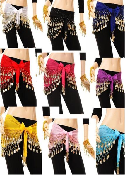 dhl fedex 50 pieces wonderful handmade belly dance belt hip scarf coin wrap belt skirt hipscarf gold coins mixed colors7128290, Black;red