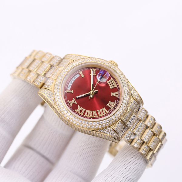 diamond watches mens watch automatic mechanical movement stainless steel strap sapphire mirror waterproof design wristwatch gift for men, Slivery;brown