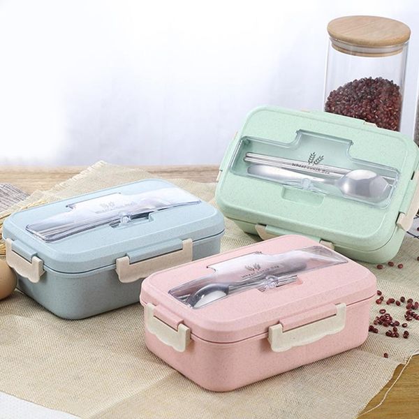 dinnerware sets microwave lunch box wheat straw storage container children kids school office portable bento bag