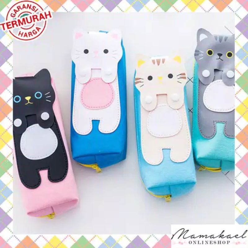 Kotak pensil kucing, tersedia dalam 4 warna, bahan kanvas.
