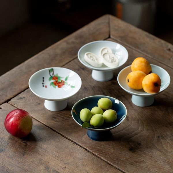 dishes & plates japanese-style retro tray dessert fruit plate ceramic dried household high leg snack dish nuts