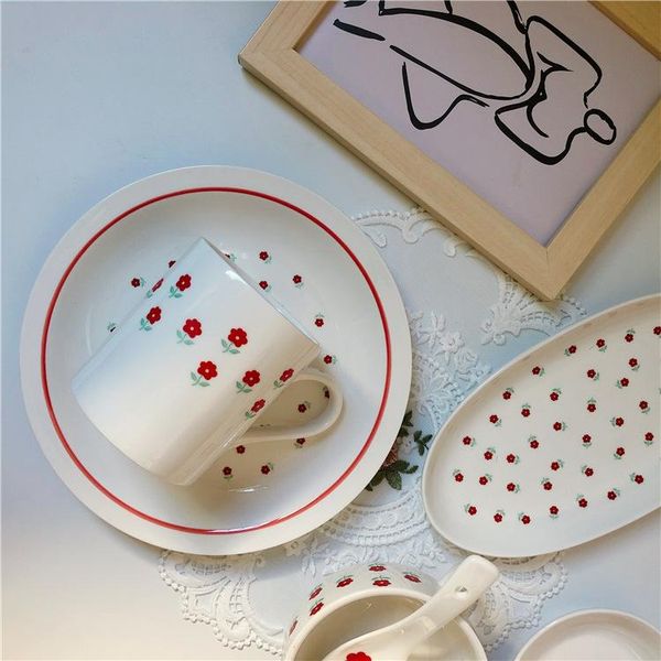 dishes & plates small red flower cutlery set cute dish bowl mug household coffee cup dinner plate sets ceramic tableware