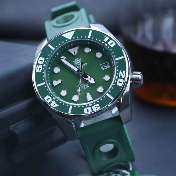 dive watch sapphire 316l steel mechanical watches nh35 diving ceramic bezel automatic men c3 luminous wristwatches, Slivery;brown