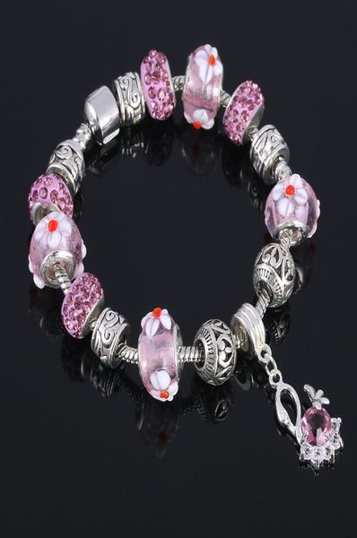 diy bracelet crystal swan jewelry charm flower beads bracelet with glass crystal beads for women7068017, Black