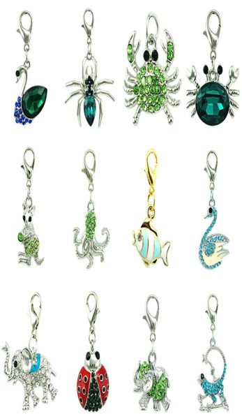 diy mix new fashion green crystal dangle floating animal pendant lobster clasp charms for jewelry accessories7382310, Bronze;silver