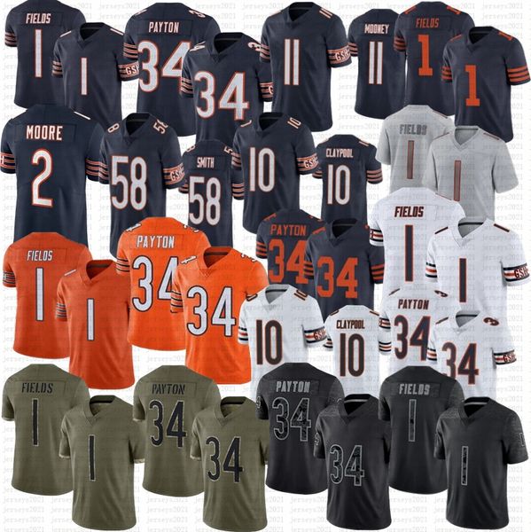 dj moore justin fields football bear jersey chase claypool walter payton darnell mooney roquan smith stitched jerseys