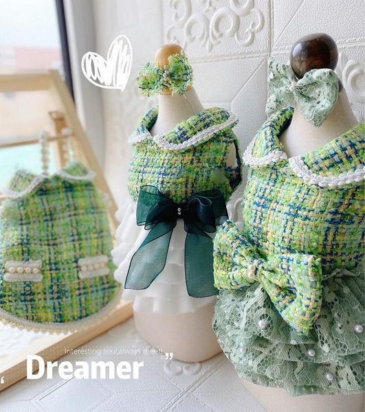 dog apparel handmade tweed clothes pet couples dress coat outfit avocado emerald green lace skirt 3 style yorkie poodle