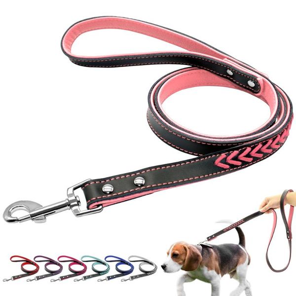 dog collars & leashes 120cm long braided leather leash pet lead puppy walking training traction rope belt for small medium dogs