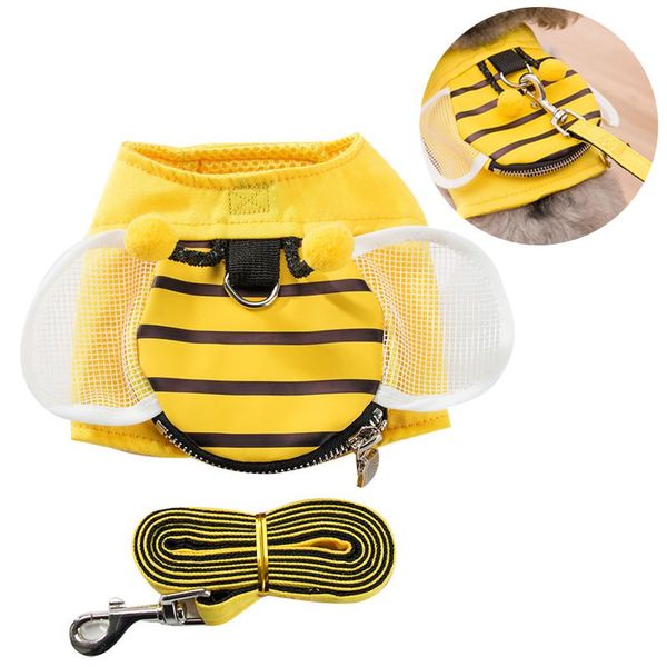dog collars & leashes cute pet backpack harness travel outdoor hiking little bee shape saddlebag with leash for small dogs