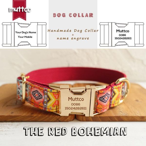 dog collars & leashes muttco retailing anti-lost custom name soft stubborn collar the red bohemian and leash set 5 sizes udc055j
