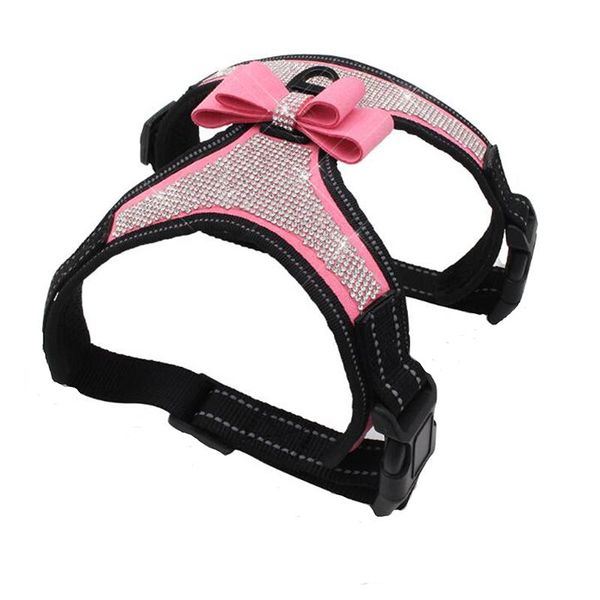 dog collars & leashes pet chest strap shiny rhinestone high reflective bow tie back harness belt outdoor walking lead