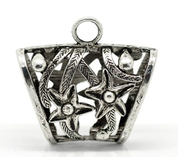 dorabeads antique silver flower bail beads for wrap scarf 3.9x3.8cm(hole size:24x13mm),sold per pack of 5, Bronze;silver