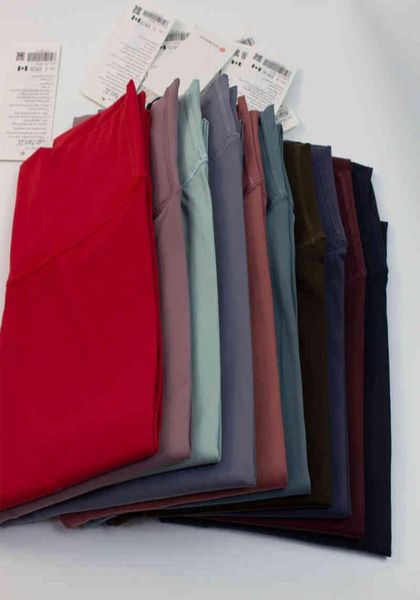 double sided brushed align nude yoga suit women039s high waist hip lifting capris tight leggings sports pants2877355, White;red