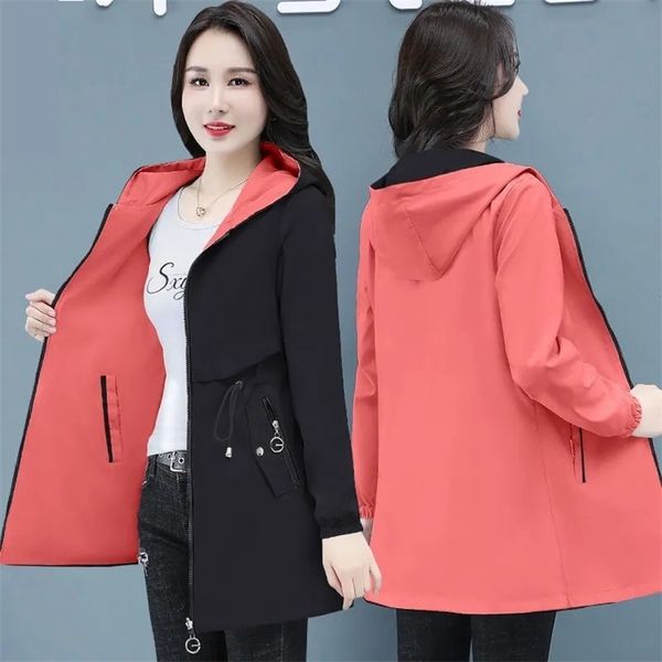 doublesided trench coat women fashion spring autumn clothes hooded midlength windbreakers female outerwear casual 220722, Tan;black