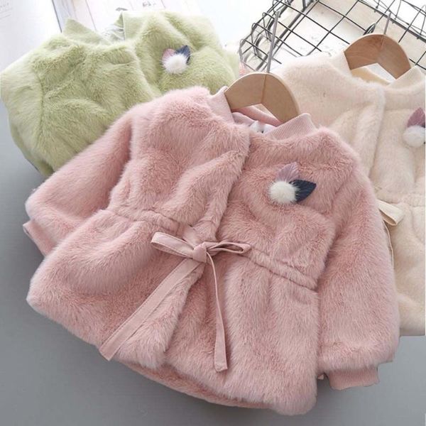 down coat 2021 girls kids winter fake fur soft cotton paddedthickening warm belt coats cute baby overcoats children clothing 0-8t, Blue;gray