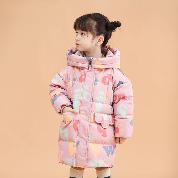 down coat children girls casual clothes warm letter print children's winter fashion cute jacket outwear baby long jackets, Blue;gray