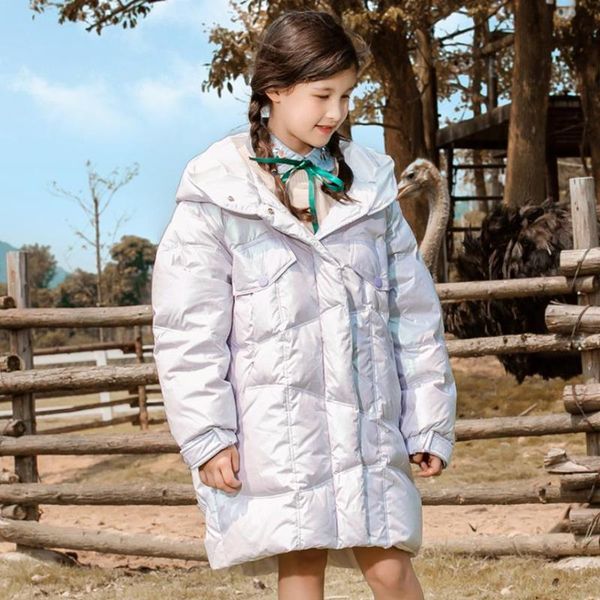 down coat korean fashion winter children glossy thicker warm oversize outerwear 90% white duck jackets for girls a862, Blue;gray