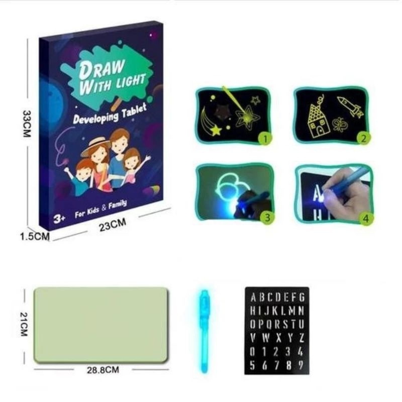 Deskripsi Magic Drawing With Light Papan Tulis LED Glow In The Dark Edukasi Anak