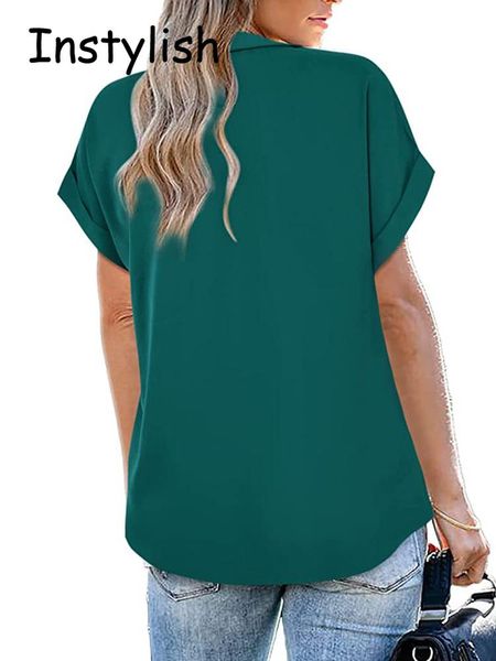dress korean fashion chiffon blouse elegant short sleeve v neck loose shirt summer office lady solid blouse women chic women tunic, White
