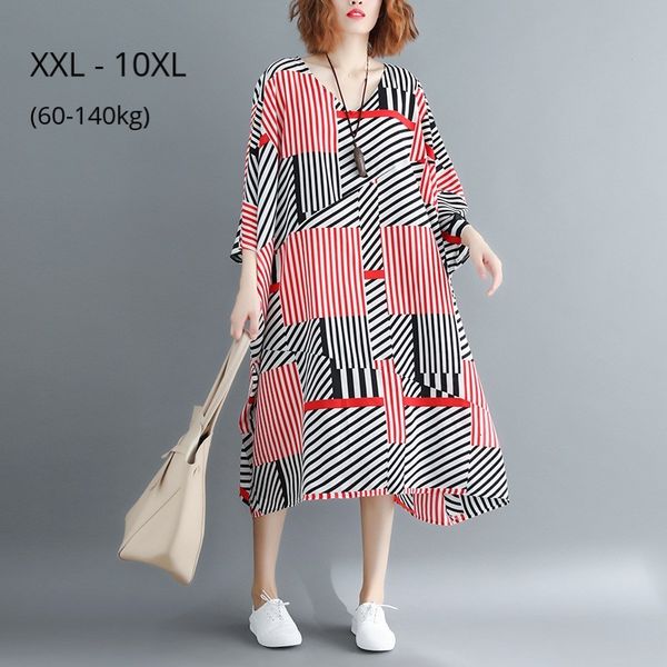 dresses plus size 10xl 9xl short sleeve summer dress female elegant black red striped casual clothing oversized beach dresses for women, Black;gray