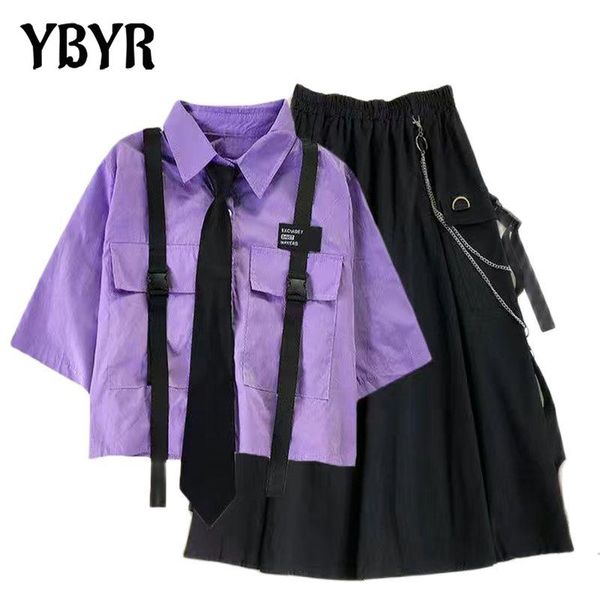 dresses ybyr harajuku cargo skirts cotton woman 2021 loose aline pocket midi long black skirt shirt with tie twopiece set streetwear, Black;gray