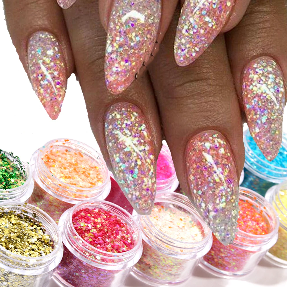 12 Colors Iridescent Glitter Flakes, 3D Holographic Mermaid Nail Sequins, Bling Chunky Glitter Irregular Paint