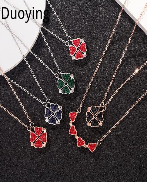 duoying zircon pendant doublesided fourleaf clover necklace love heart zircon choker christmas gift flower women necklaces9419791, Silver