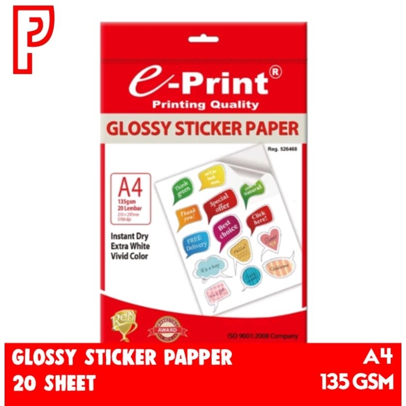 Produk e Print kertas sticker ukuran A4, bisa untuk sticker label, sekolah, kantoran, dll.