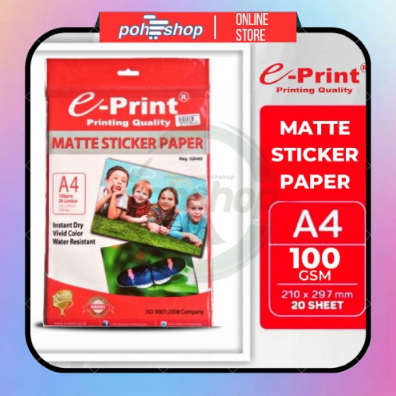 e-Print Matte Sticker Paper A4/100gsm 20's