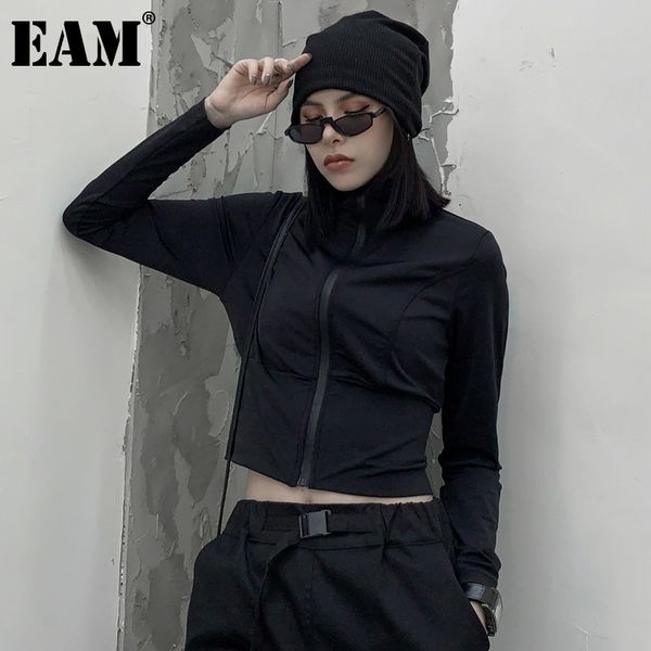 [eam] loose fit black zipper slim short casual jacket lapel long sleeve women coat fashion spring autumn 1dd7649 21512, Black;brown