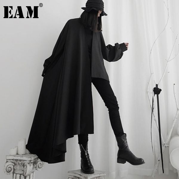 [eam] women black asymmetrical big size trench new lapel long sleeve loose fit windbreaker fashion spring autumn 19a-a556 201103, Tan;black