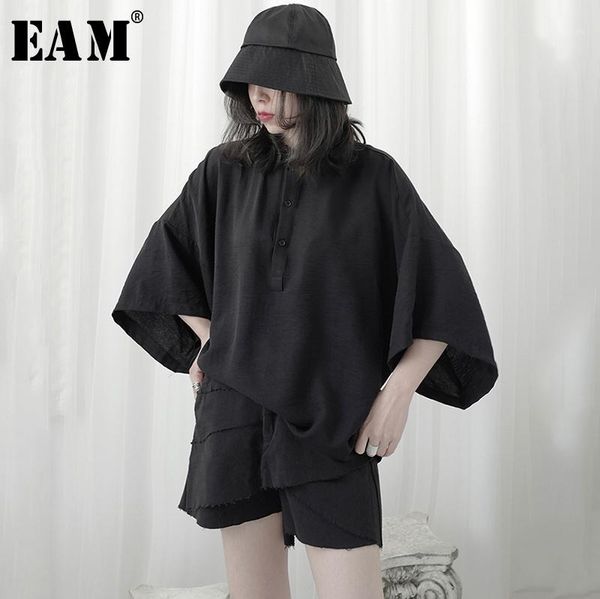 eam] women black brief big size blouse new lapel three-quarter sleeve loose fit shirt fashion tide spring summer 2020 1u9521, White