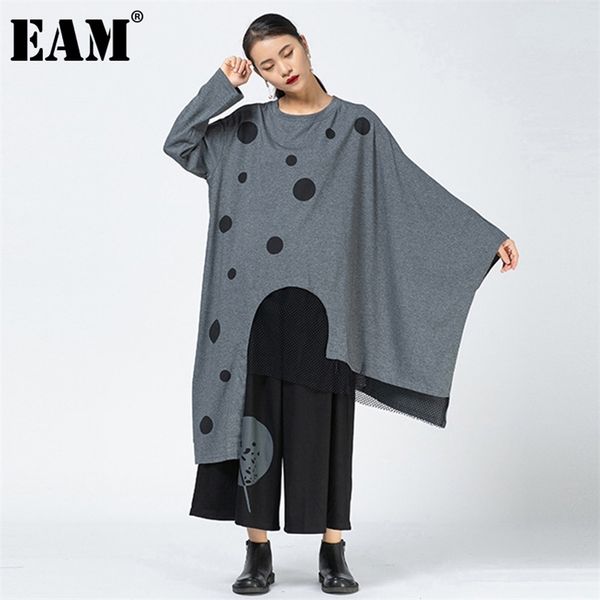[eam] women gray dot mesh irregular big size long t-shirt new round neck long sleeve fashion tide spring autumn 1dd0251 210401, White
