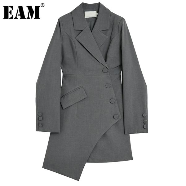[eam] women gray irregular desgin long blazer lapel sleeve loose fit jacket fashion spring autumn 1de2148 211019, White;black