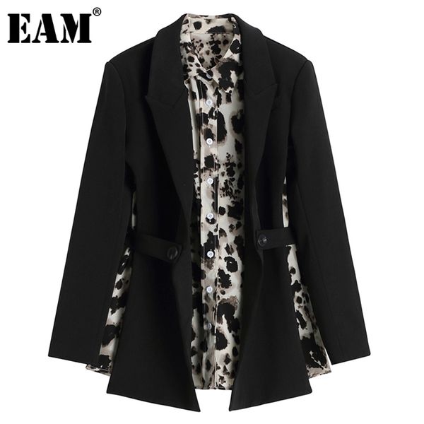 [eam] women leopard print backless big size blazer notched collar long sleeve jacket fashion spring autumn 1dd4175 211019, White;black