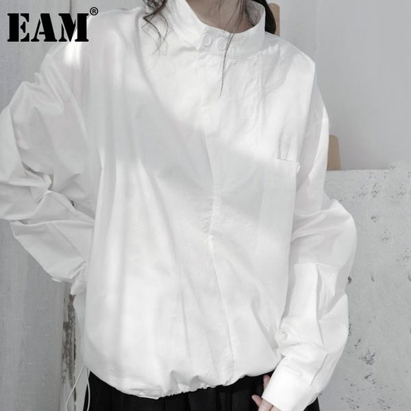 [eam] women white brief big size blouse stand collar long sleeve loose fit shirt fashion tide spring autumn 2021 1db378 women's blouses